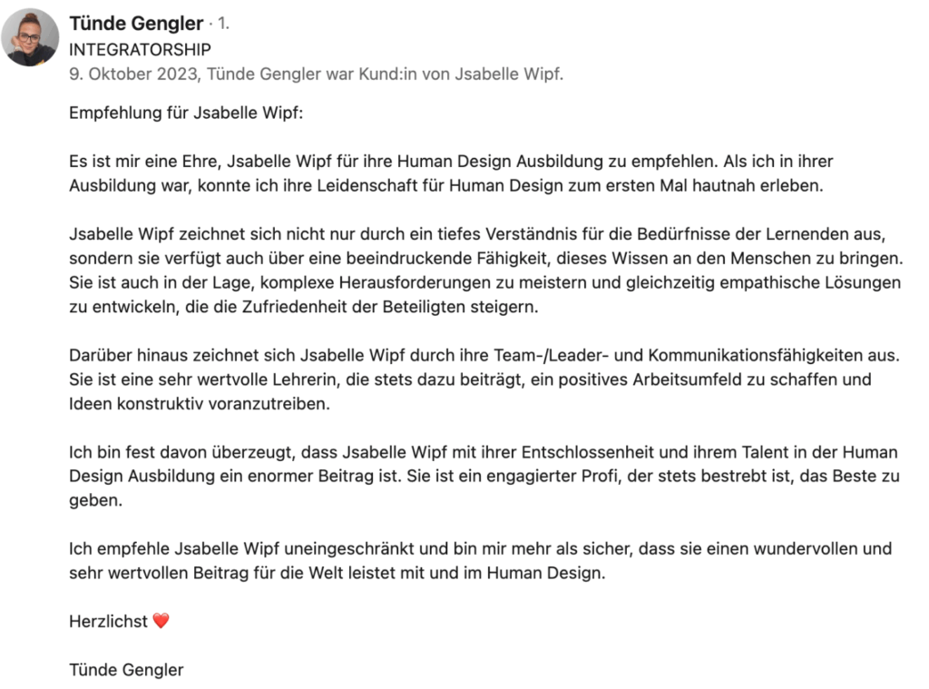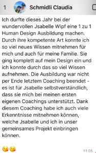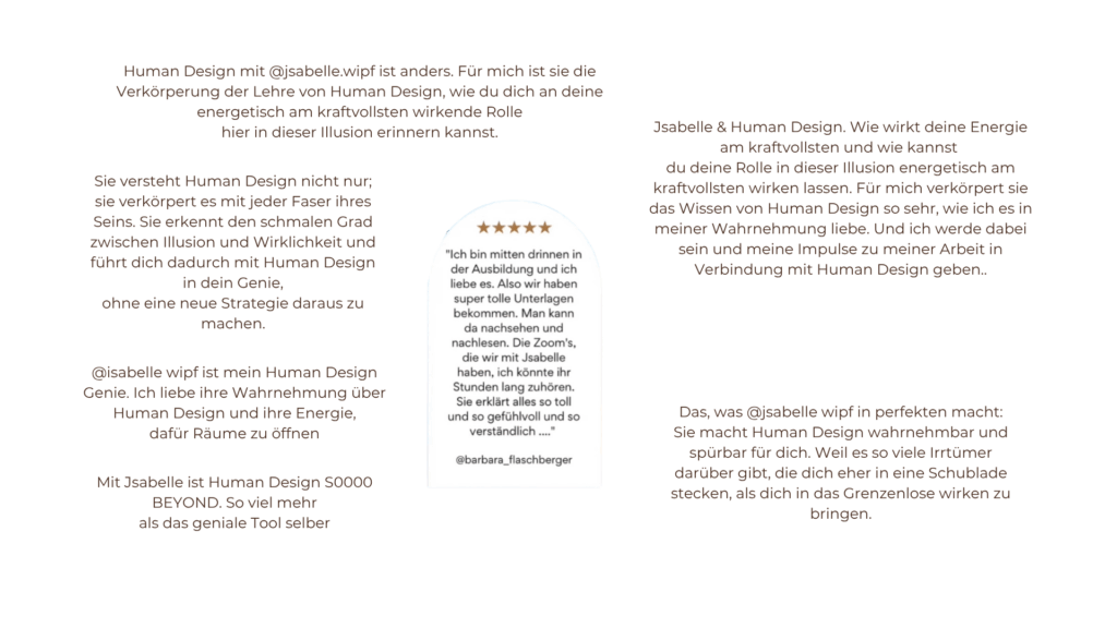 Bei Interesse schicke uns eine Mail an jsabelle@institut-humandesign.com
