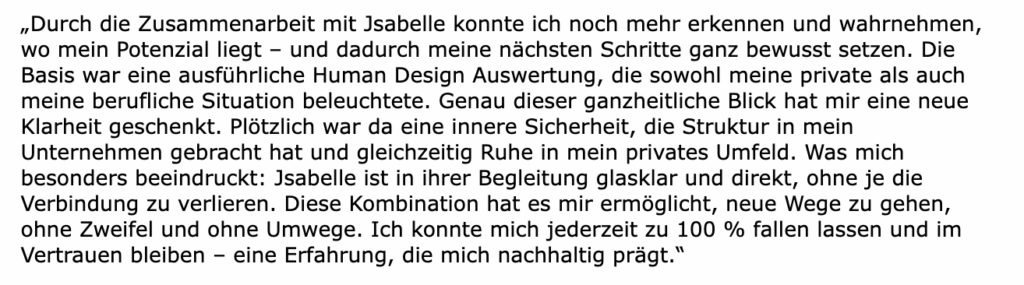In diesem Bereich engagieren wir uns in einer individuelle Zusammenarbeit mit deinem Unternehmen. Wir freuen uns auf deine Anfrage per Mail an jsabelle@institut-humandesign.com.